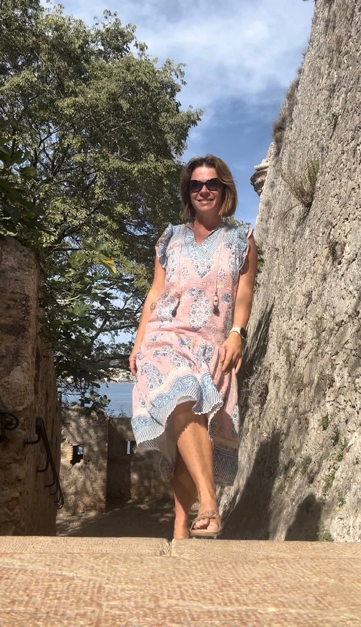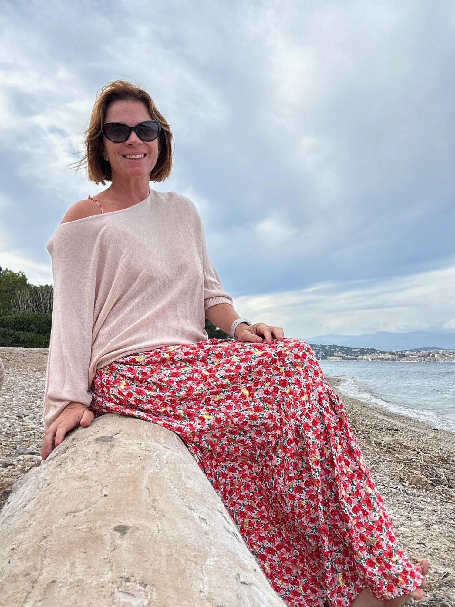 Bought this dress at a sidewalk sale in Juan-les-Pins for 20 Euros. I was on and off with that cardigan depending on if I was in the sun or shade. We had every kind of weather when I was there! It should be more summery when we go in 2024!